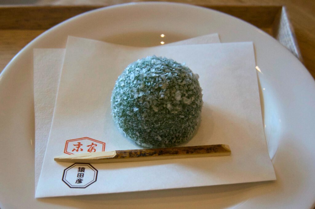 毎朝届けられる作りたての和菓子は、繊細で上品な甘み。「抹茶ショット」とも好相性でした。